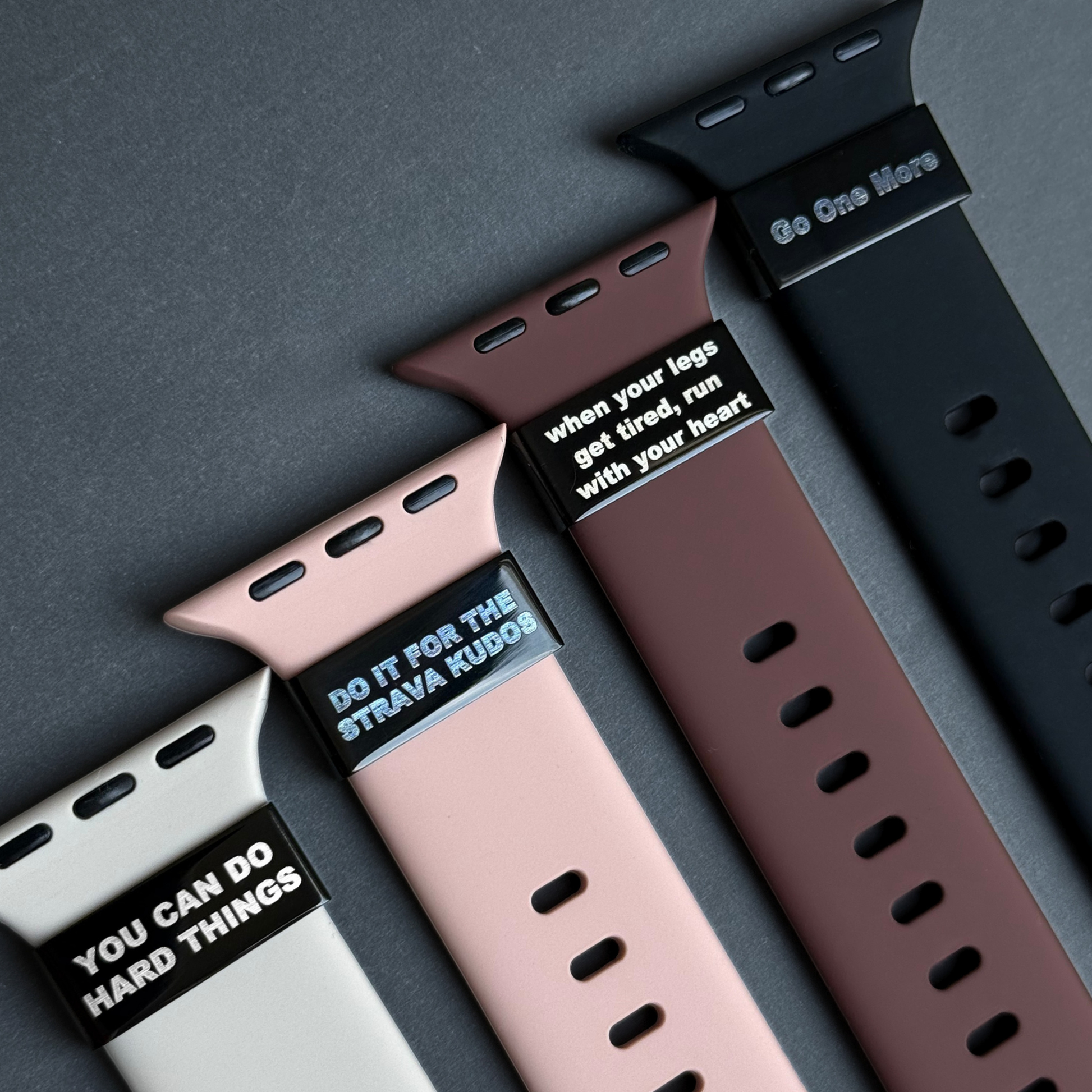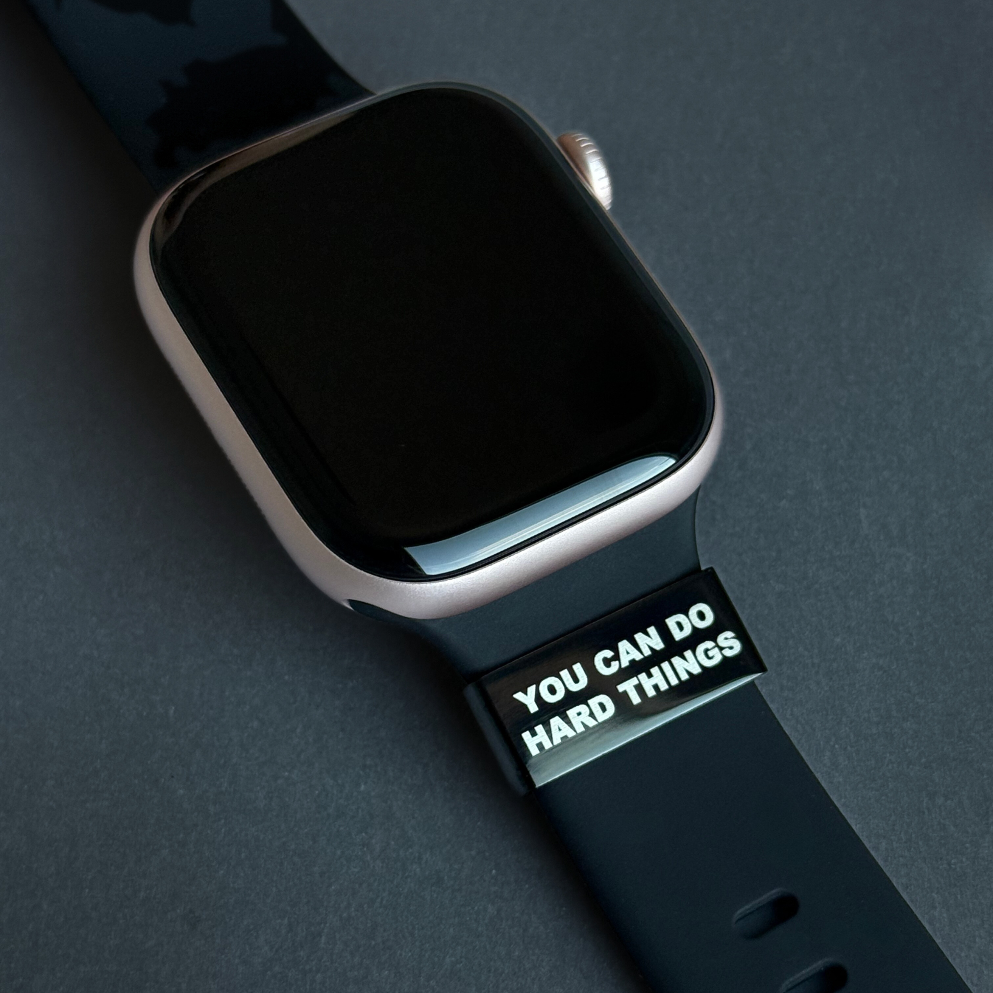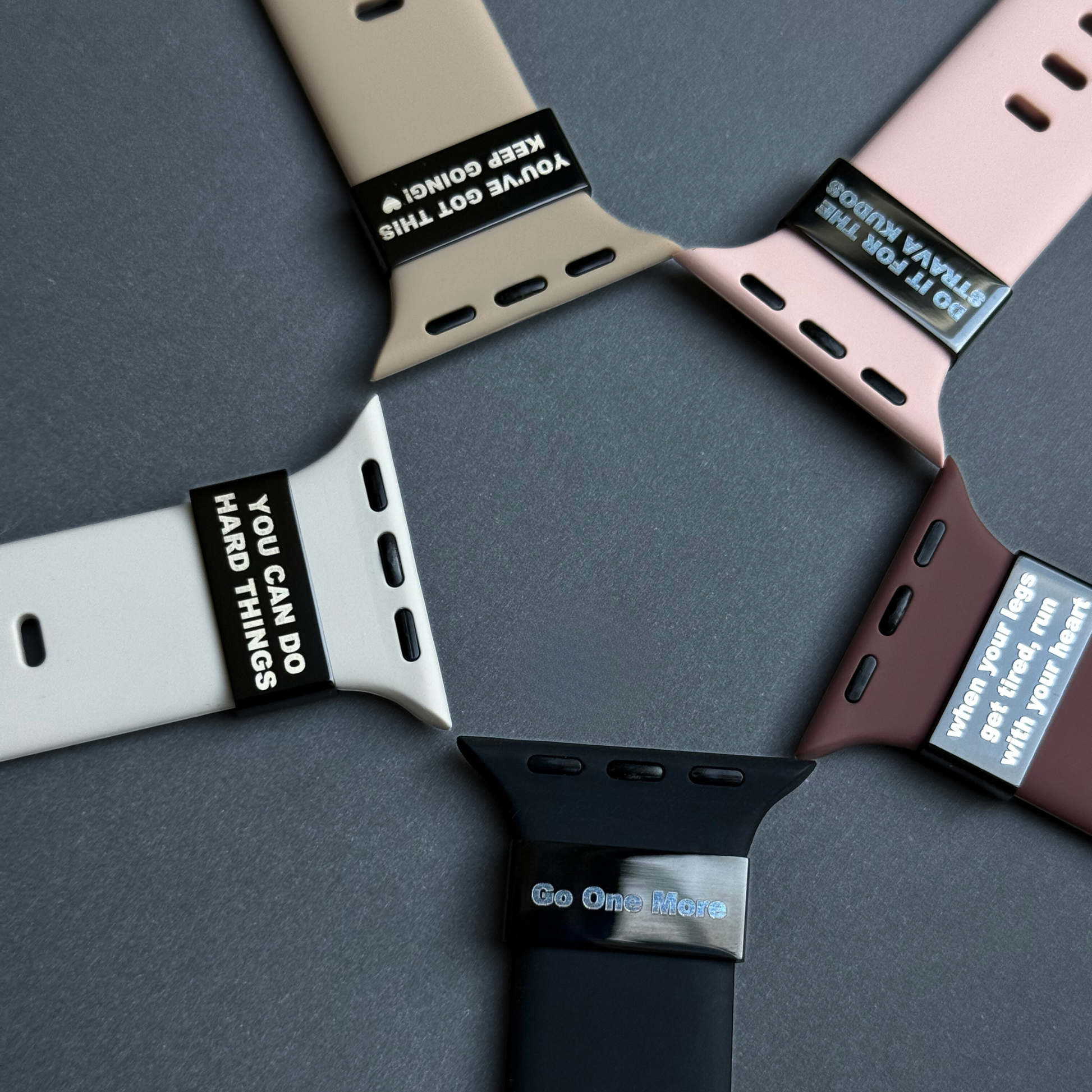 Precision-engraved from premium black stainless steel, each tag adds a sleek, motivational touch to your watch strap — designed for her or him.