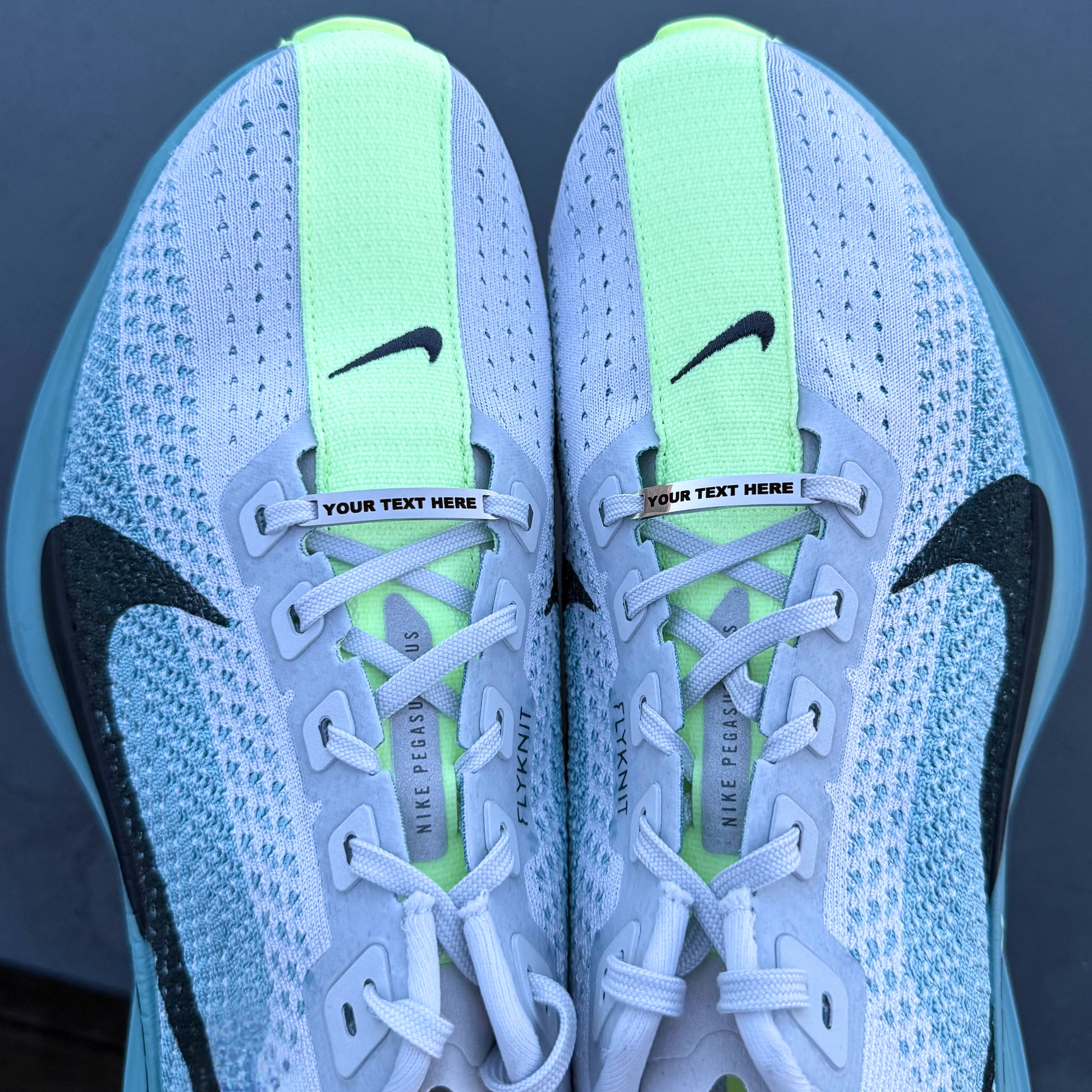 Yes! Our shoe tags are designed to fit securely on standard running-shoe and trainer laces.